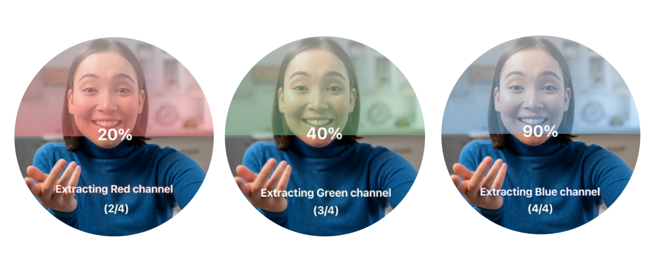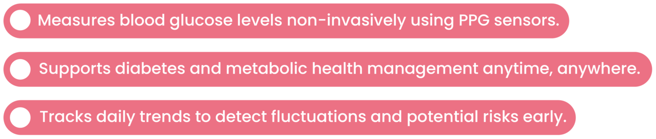 rPPG (remote Photoplethysmography) uses your smartphone camera to detect subtle changes in skin color caused by blood flow. Through ROI (Region of Interest) detection, the camera tracks red, green, and blue signals on your face and transforms them into wave patterns that reflect circulation. These signals unlock key health insights to glucose trends without the need for needles or lab equipment.